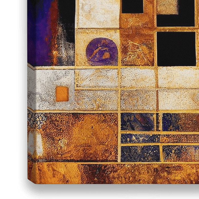 Een kleurrijk digitaal schilderij genaamd "Abstract Golden Chaos" in te stijl van Gustav Klimt. Dit werk is geïnspireerd door de vormen en het kleurenpallet van "De Kus". Het werk geeft een warme en klassieke uitstraling aan uw interieur!