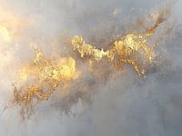 Abstract Grijs en Goud - Dit is een abstract schilderij met een zachte achtergrond in grijs en een opvallend gouden patroon dat door het schilderij heen beweegt, wat een moderne uitstraling geeft aan de kunst.