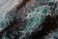 Abstract schilderij met groene en zwarte organische vormen die samen een energiek en dynamisch beeld vormen.