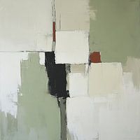 Details: abstract, schilderij, geometrie, contrast, zwart, wit, groen, taupe, vormen, modern