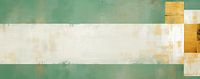 Details: abstract, schilderij, kunst, groen, wit, goud, rechthoeken, moderne kunst, balans, rust