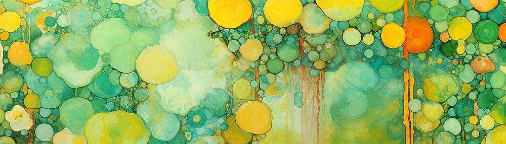 Abstract Groen en Geel | Groen en Geel abstract werk - Een serene compositie van abstracte natuurlijke vormen die doen denken aan een veld vol bloemen of blaadjes, badend in een zacht palet van geel, oranje en groene tinten. De gelaagde textuur en de subtiele kleurgradaties creëren een dromerige en rustgevende ambiance.