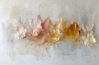 Abstract schilderij met bladeren en aardetinten. Crème witte achtergrond, natuurlijke sfeer. Perfect voor rustiek, boho of klassiek interieur.
