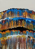 Het Colosseum in Rome was de inspiratie voor dit abstracte schilderij. Ronde bogen en vormen in heldere kleuren blauw, goud en koper. Uitgevoerd in acrylverf op canvas in de Fluid Art techniek. Voor mij drukt dit het kleurrijke en levendige Italië uit.