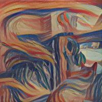 Abstract Inspiratie III digitale gouache schilderij in de stijl van The Scream van Edvard Munch - Kat die naar buiten kijkt