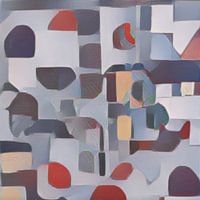 Abstract Inspiratie VIII digitale gouache schilderij in de stijl van Composition Of Circles and Overlapping van Sophie Taeuber-Arp - Kat die naar buiten kijkt