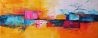 Abstract Kleurenspel | Cascade of Fierce Hues - Hedendaags abstract kleurspel Details: abstract, modern, kleurrijk, schilderij, kunst, canvas, decoratie, interieur, expressief, dynamisch Kleuren: oranje, blauw, roze, rood, wit, geel, zwart Abstract Kleurenspel