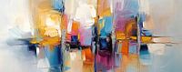 Abstract Kleurrijk | Cascading Color Symphony - Dit abstracte schilderij toont een levendige collage van kleuren in stevige streken, met een gevoel van dynamiek en diepte die gesuggereerd wordt door overlappende kleurblokken.