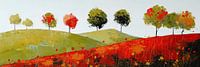 Details: abstract, landschap, natuur, bomen, heuvels, modern, kleurrijk, velden, herfst, kunst