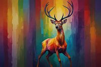 Ontdek de dynamiek van kleuren met dit levendige, abstracte kunstwerk dat een hert illustreert. De levendige penseelstreken en de rijke kleuren brengen energie in elke ruimte, perfect voor wie zijn interieur een moderne en artistieke touch wil geven. Dit stuk is een ode aan de natuur en haar majestueuze dieren, vertaald in een taal van…