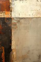 Details: abstract schilderij, aardetinten, grijs, bruin, industriële kunst, moderne kunst, rustieke texturen, kleurverdeling,…