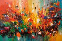 Ontdek de levendige magie van dit expressieve, abstracte schilderij en laat je meevoeren door de krachtige energie die het uitstraalt. Getooid in warme en levendige kleuren, komt dit kunstwerk tot leven met grove penseelstreken die elke beweging en emotie vangen. Dompel jezelf onder in een wereld van kleur en dynamiek, waar het kijken naar dit meesterwerk je overspoelt met een positief en energiek gevoel.