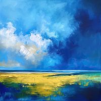Abstract Landschap Blauw | Electric Azure - dynamisch abstract landschap in blauw en geel