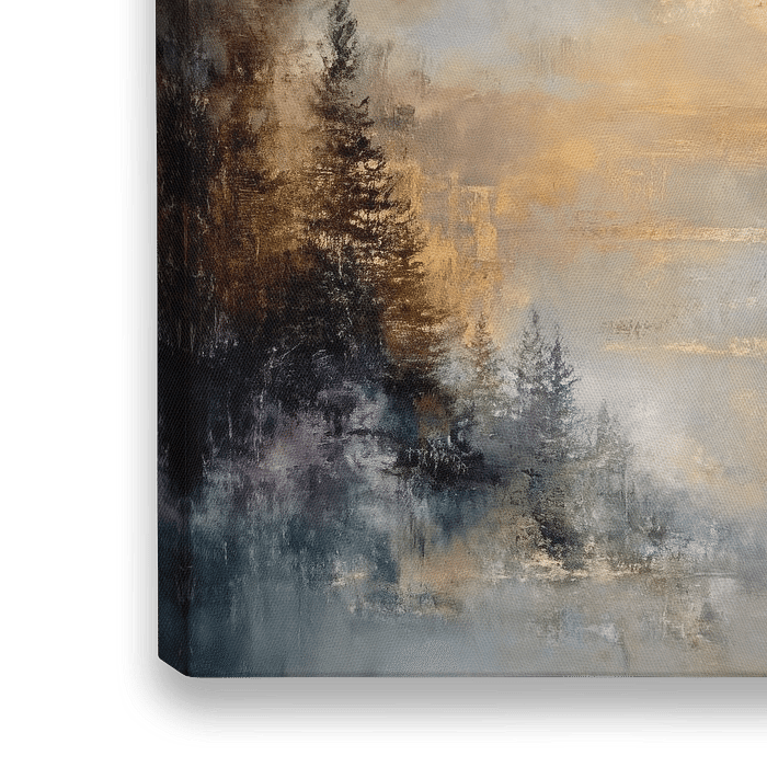 Dit gouden abstracte landschap met nevelige tinten en zachte herfstkleuren voelt dromerig en elegant aan. Het brengt een gevoel van rust en warme diepte in je interieur. Mooi passend in Scandinavische, Japandi, Modern Chic en Wabi-Sabi interieurs en een bijzondere toevoeging voor woonkamer, eetkamer, hal of slaapkamer.