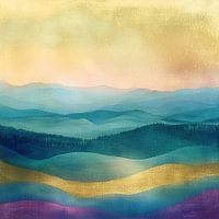 Abstract Landschap | Serene Layered Vista - Dit abstracte landschapsschilderij betovert met zijn golvende heuvels en serene kleurtransities, waarmee het gevoel van een vredig, uitgestrekt landschap wordt opgeroepen.