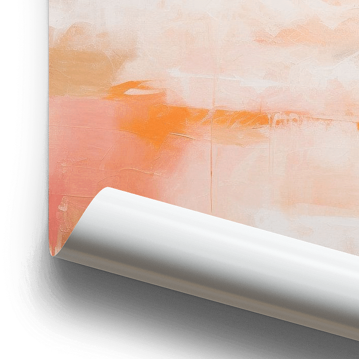 Abstract Landschap | Abstracte Kunst - Op dit doek prijkt een abstract spel van zachte, harmonieuze kleuren die samenvloeien tot een rustige uitstraling. Het subtiele gebruik van 'Peach Fuzz' voegt een warme gloed toe, perfect in balans met de koele blauwtinten en neutrale witten die ruimte en licht suggereren.