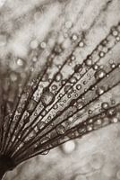 "Abstract: Lijnen en druppels verdwijnen in de achtergrond" is een extreme macrofoto. Een klein stukje wordt hierdoor een beeldvullend onderwerp, en zie je dingen die je normaal snel over het hoofd zou zien. Dit tafereeltje is in werkelijkheid ongeveer 1 a 2 centimeter groot. Deze bewerkte foto heeft de kleuren zwart wit en bruin - sepia.