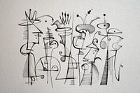 Dit zwart-witte abstracte schilderij met grafische lijnvormen voelt mysterieus en modern aan en brengt een artistieke rust in je interieur. De subtiele lijnen en symbolische figuren wekken nieuwsgierigheid en geven karakter aan de ruimte.
