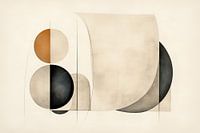 Abstract Minimalisme - Op het doek zie je een spel van abstracte vormen met een Japanse touch, waarbij geometrische en organische lijnen naadloos in elkaar overgaan. De subtiele kleurenpalet bestaat uit neutrale beige en zachte zwarte tinten, doorbroken door een warme terracotta cirkel, wat het geheel een serene en toch speelse sfeer…