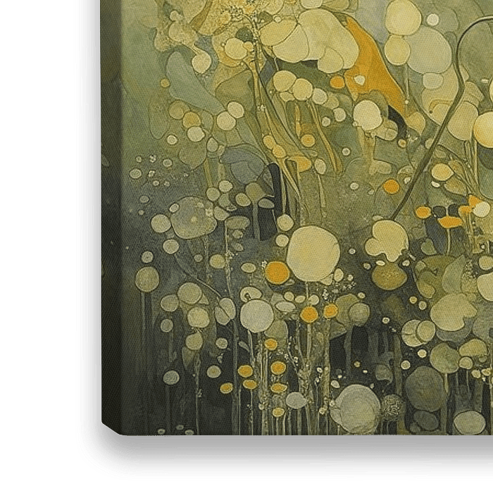 Abstract Natuur - Met een ingetogen elegantie nodigt dit werk je uit tot een frisse adempauze, waarin gestileerde bloemvormen zich zachtjes aftekenen tegen een atmosferische achtergrond vol aquarellige groen- en geeltinten, versterkt door subtiele toetsen van oranje. Het is een tijdloos stuk waarin de natuurlijke wereld abstract en toch…