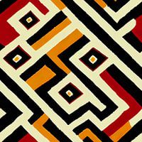 Dit abstracte kleurrijke patroon is onderdeel van een collectie van vijfentwintig patronen die ik heb gemaakt waarbij ik de stijl van de Navajo tapijtpatronen heb gecombineerd met die van de Azteken.