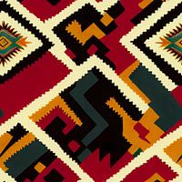 Dit abstracte kleurrijke patroon is onderdeel van een collectie van vijfentwintig patronen die ik heb gemaakt waarbij ik de stijl van de Navajo tapijtpatronen heb gecombineerd met die van de Azteken.