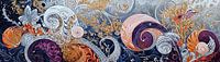 Details: goud, blauw, paars, oranje, wit, grijs, abstract, flora, luxe, dynamisch, Groovy Champagne