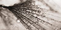 "Abstract Panorama: Lijnen en druppels verdwijnen in de achtergrond" is een extreme macrofoto. Een klein stukje wordt hierdoor een beeldvullend onderwerp, en zie je dingen die je normaal snel over het hoofd zou zien. Dit tafereeltje is in werkelijkheid ongeveer 1 a 2 centimeter groot. Deze bewerkte foto heeft de kleuren zwart wit en bruin - sepia en is bijgesneden tot panoramaformaat.