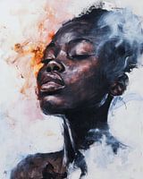 This stunning artwork features an abstract portrait of a woman enveloped in ethereal light. The painting blends vibrant colors and expressive brushstrokes, creating a sense of serenity and mystical beauty. The woman's peaceful expression and the dynamic interplay of light and shadow make this piece a captivating and elegant addition to any art collection.