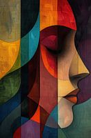 Details: portret, abstract, kleurrijk, gezicht, moderne kunst, schilderij, artistiek, vrouw, pop art, contouren