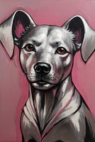 Abstract Portret van een Hond in Roze en Zilver van Art & Soul Creations