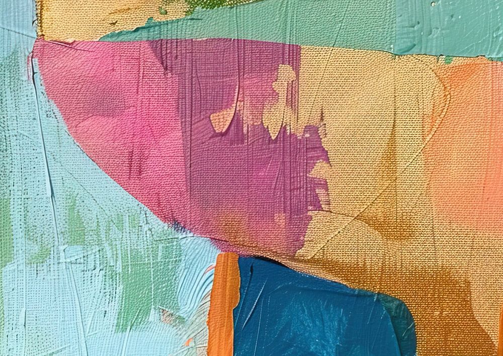 Abstract Portret - In dit abstract schilderij zie je een speelse combinatie van kleuren zoals blauw, roze en groen, die samen een modern en dynamisch portret vormen met een gevoel van beweging en energie.