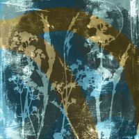 Koop dit moderne kunstwerk Abstract Retro Botanisch. Bloemen, planten en bladeren in blauw, bruin, wit van Dina Dankers op canvas, aluminium dibond, (ingelijste) fotoprint, behang en ArtFrame, op maat geprint in Fine-Art kwaliteit.
