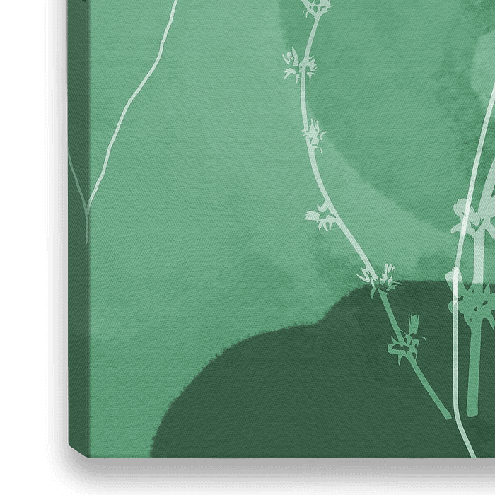 Geïnspireerd door de natuur. Monotype van echte planten en abstracte texturen en lijnen. Mixed media abstracte botanische kunst. Industriële, Retro, Boheemse, Minimalistische, Scandinavische interieurstijl.