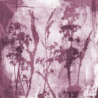Geïnspireerd door de natuur. Monotype van echte planten en abstracte texturen en lijnen. Mixed media abstracte botanische kunst. Industriële, Retro, Boheemse, Minimalistische, Scandinavische interieurstijl.
