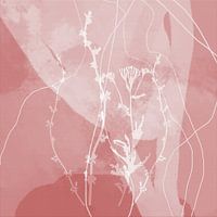 Geïnspireerd door de natuur. Monotype van echte planten en abstracte texturen en lijnen. Mixed media abstracte botanische kunst. Industriële, Retro, Boheemse, Minimalistische, Scandinavische interieurstijl.