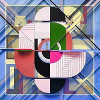 Abstract Rhythms with Human Scale is een meeslepend abstract kunstwerk dat geometrische precisie combineert met een gevoel van menselijke aanwezigheid en verwondering. Het werk is opgebouwd uit contrasterende vlakken, cirkels en lijnen in krachtige kleuren zoals groen, roze, zwart en blauw. Deze geometrische compositie creëert een…