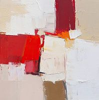 Details: abstract, schilderij, rood, taupe, blokken, modern, kunst, textuur, contrast, vormen