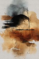 Dit warme abstracte schilderij in aardetinten met zwarte penseelstreken voelt rustig en modern aan en brengt natuurlijke harmonie in je interieur. De zachte overgang van beige, bruin en zwart creëert een serene sfeer en geeft je muur karakter zonder te overheersen.