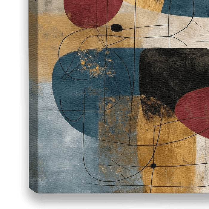 Dit blauw oker abstract schilderij met grote organische kleurvlakken, rode accenten en fijne zwarte lijnstructuren voelt krachtig en modern aan en geeft stijl aan je interieur. De combinatie van geometrische vormen en speelse lijnen brengt dynamiek en verfijning in de ruimte. Mooi passend in Modern Chic, Eclectisch, Design en…