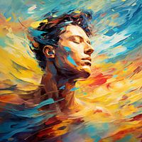 Duik in de wereld van dromen en aspiraties met dit abstracte canvas kunstwerk. De golvende bewegingen en rijke kleuren vangen de essentie van een man en zijn dromen of verlangen naar een vrouw.