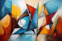 Abstract Schilderij | Dynamisch Kleurenspel - Dit abstracte kunstwerk speelt met geometrische vormen en een spectrum aan warme tinten, begeleid door contrastrijke blauwe accenten voor een evenwichtige en toch dynamische compositie. De stijl nodigt uit tot interpretatie en kan een krachtige toevoeging zijn in zowel moderne als klassieke…
