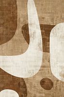 Abstract Schilderij | Flow of Nature's Design - Dit abstracte schilderij presenteert een intrigerende compositie van organische vormen en structurele elementen, resonerend in een gevarieerde palet van bruine en crèmekleurige tinten. De afbeelding is opgebouwd uit grote, zachte vormen die elkaar overlappen en elkaar aanvullen, waardoor een dynamisch, bijna meditatief beeld ontstaat. De textuur in het kunstwerk is rijk en gevarieerd, wat een gevoel van diepte en complexiteit toevoegt. Verschillende schakeringen van bruin mengen zich met secties van afgebleekt wit en crème, waardoor het geheel een warme en rustgevende uitstraling krijgt. De zachte, vloeiende lijnen suggereren een organische oorsprong, als of ze geïnspireerd zijn door natuurlijke elementen zoals stenen, water of zandlandschappen.