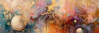Details: abstract, schilderij, goud, pastel, mystiek, luxe, beweging, dromerig, kleurrijk, kunst
