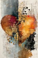 Dit goud en oranje abstract schilderij met hartvormige accenten en verfijnde textuur voelt vrolijk en elegant aan en brengt warmte in je interieur. De mix van goudtinten en zachte penseelstreken symboliseert liefde en geluk in een moderne vorm. Mooi passend in Romantische, Modern Chic, Grandeur Chique en Japandi interieurs en een…