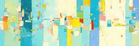 Abstract Schilderij | Mosaic of Dreams - Dit abstracte schilderij toont een levendige en kleurrijke compositie van overlappende blokken en strepen in een scala aan pasteltinten en felle kleuren, waardoor een gevoel van dynamische harmonie en levendigheid wordt gecreëerd.