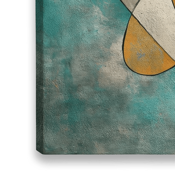 Koop dit abstracte kunstwerk Abstract Schilderij - Turquoise en Rood Vrolijk Geometrisch van Joriali Abstract op canvas, aluminium dibond, (ingelijste) fotoprint, behang en ArtFrame, op maat geprint in Fine-Art kwaliteit.
