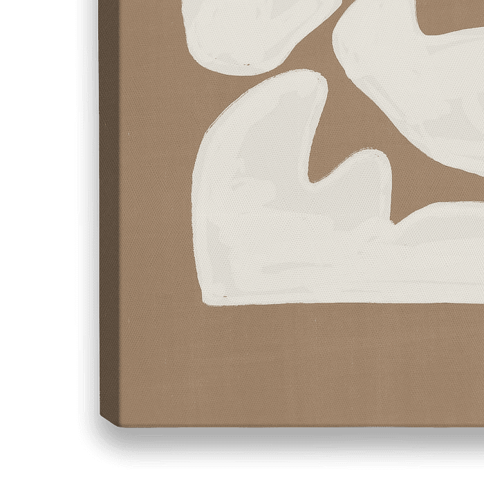 Een abstract en modern Japandi schilderij in bruin wit in Scandinavische stijl. Een rustgevende abstractie met organisch geometrische vormen om te ontspannen.