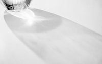 Tijdens een rustige avond, rond Kerstmis, zie je soms de mooiste dingen. Dit is een glas water met schuin erachter een kaars die mooie lange schaduwen werpt op de ondergrond. In dit geval een witte tafel
