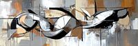 Details: abstract, modern, kunst, dynamisch, vormen, lijnen, aards, wit, zwart, bruin